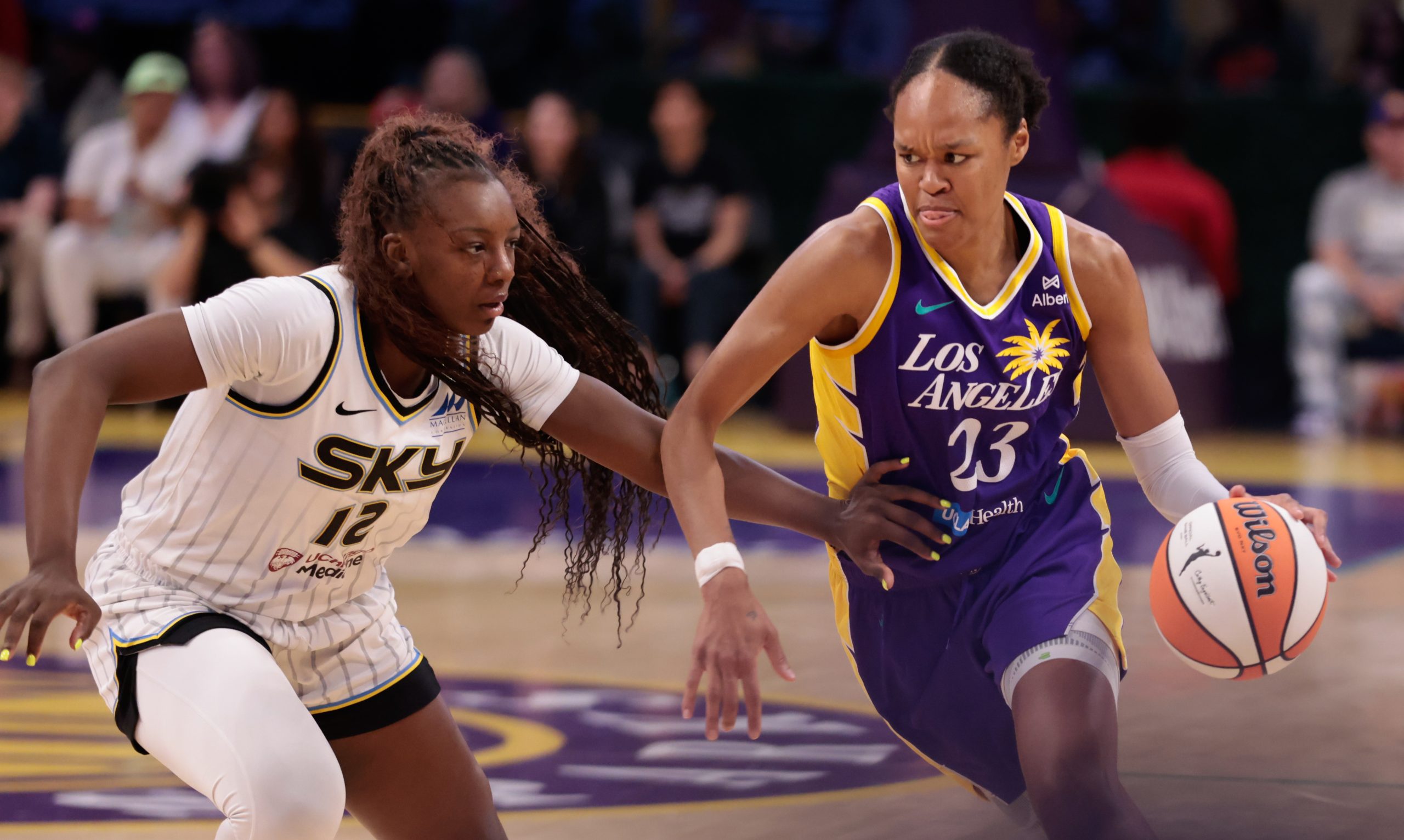LA’s Rickea Jackson started off strong, hitting 3-5 from the field while finding herself in a physical skirmish with Sky’s Rebecca Allen which gave a glimpse of how physical the game turned suddenly as both teams grew more aggressive with each other, increasing their intensity and competitiveness.