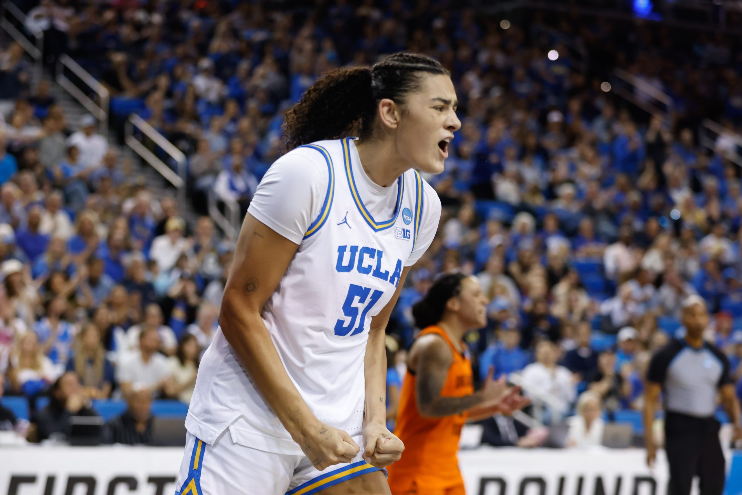 LOS ANGELES, CA — Lauren Betts delivered a historic performance in her final game at Pauley Pavilion, scoring 35 points to become UCLA’s all-time leading scorer and lead the Bruins to an 87-68 victory over Oklahoma State in the second round of the NCAA women’s basketball tournament on Monday night.