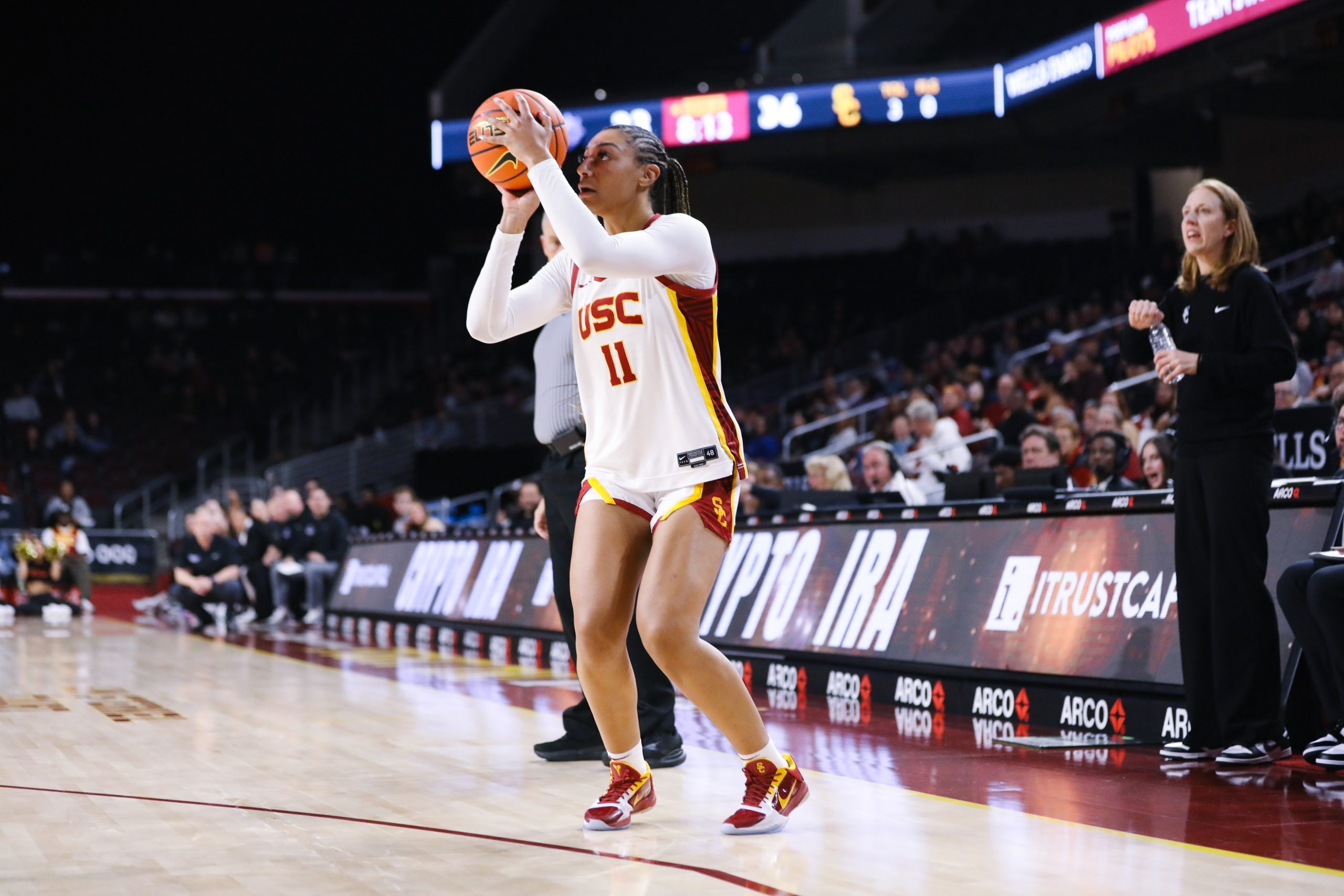 “I just thought we were a little sloppy with the ball and we talked about just being more intentional,” USC Head Coach Lindsay Gottlieb said. “Whether it was shot selection or really just getting, you know, in rhythm more. And I credit Rutger’s length and their zone kind of impacted us a little bit. But I thought we kind of got in our heads a little bit when shots didn’t fall early…”